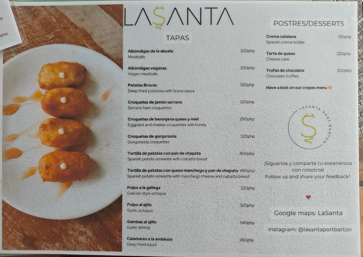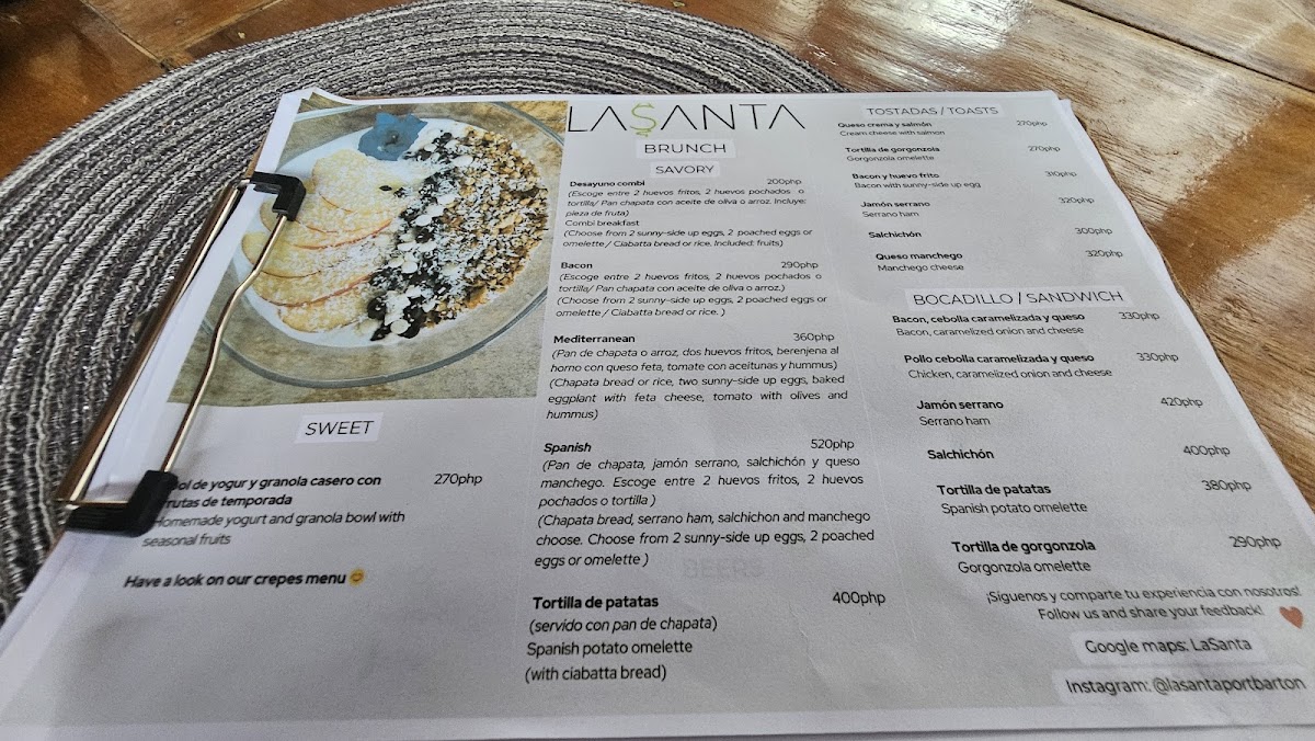 Introducing LaSanta, a delightful Spanish restaurant nestled in San Vicente, Palawan. Here, every meal is infused with warmth and authenticity, a reflection of the owners, Anaïs and Sebastiana, who extend a heartfelt welcome to all guests. The rustic charm of the restaurant—including a sloping roof adorned with dried leaves and cozy wooden furnishings—creates an inviting atmosphere perfect for families and food lovers alike.
