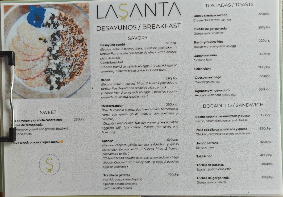 Breakfast shines at LaSanta; the Spanish breakfast is especially noteworthy, featuring crispy ciabatta, fried eggs, and a delectable trio of Manchego cheese, Serrano ham, and salchichón—a true morning feast. Diners rave about the delectable tapas and dessert options, including heavenly chocolate truffles and perfectly cooked sugar crepes. Each dish is a testament to culinary excellence, beautifully presented and bursting with flavor. With friendly service and a relaxing vibe, LaSanta is more than just a dining spot; it's an experience worth savoring.